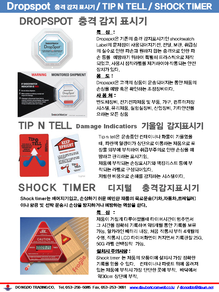 라벨: DROPSPOT 충격감지표시기 / TIP N TELL / SHOCK TIMER 디지털